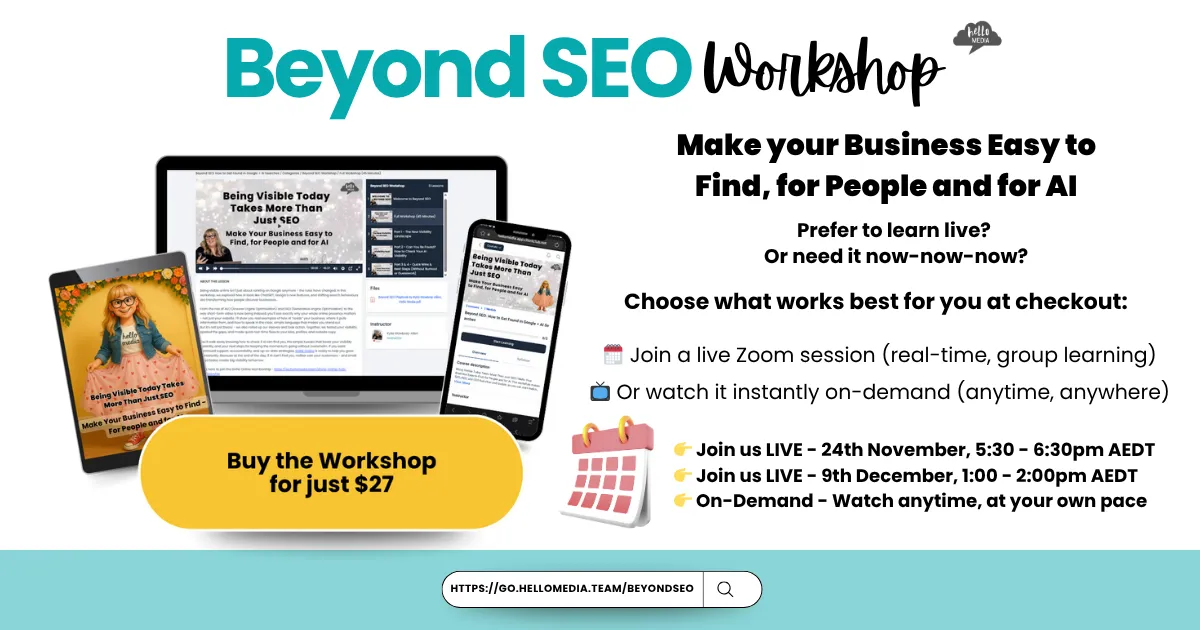 This workshop gives you clarity on how digital visibility works now - and what you can do to start showing up again.